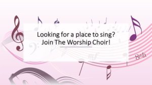 The first worship choir of 2025-2026 will be on Thursday, September 11 at 7:45 p.m.  All are welcome!